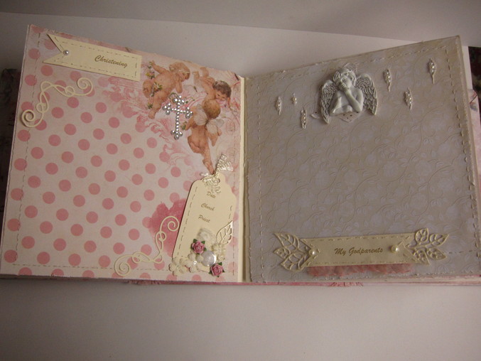 Первый разворот. Welcome Baby и кармашки с тегами на форзаце.