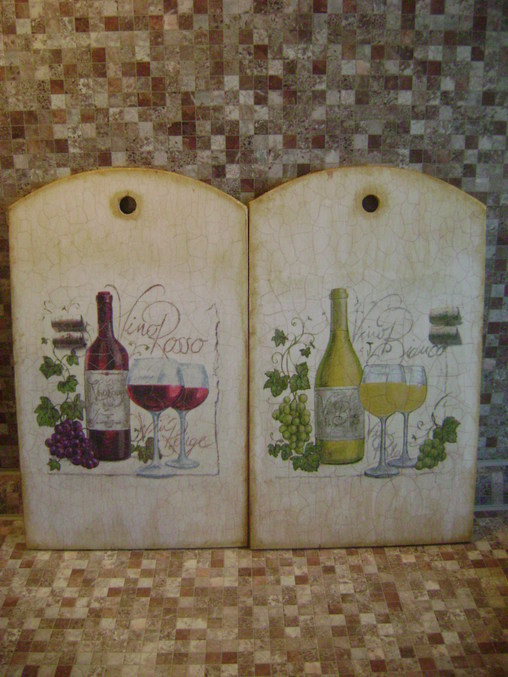 Доски: акриловый грунт, салфетка, двухшаговый кракелюр, тени для затирки трещин, акриловые краски лак.