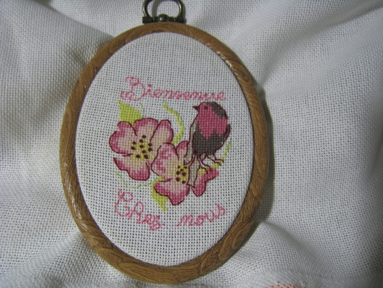 Вышивка из французского журнала. Пташка вышита на "линде" 27 ct ,в 1 нить мулине через 1 нить основы,получилось очень меленько и миленько. Продолжение следует..........