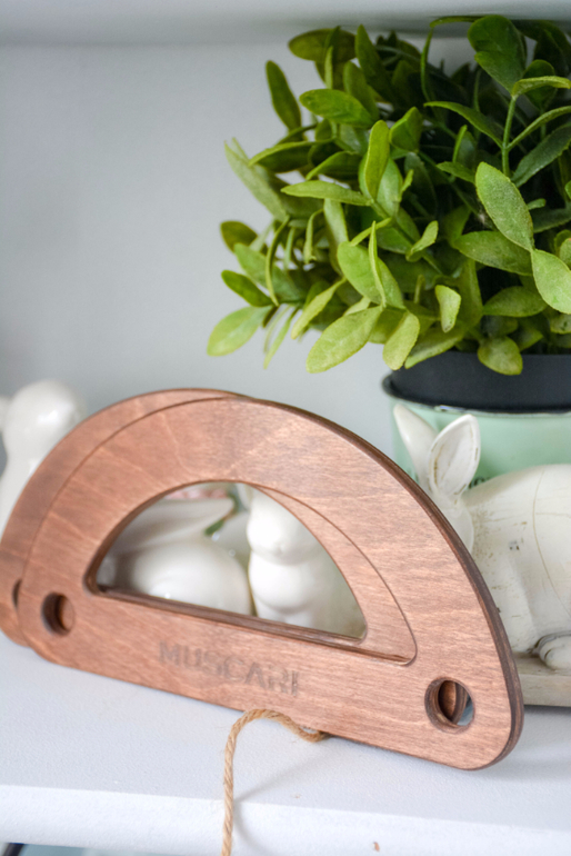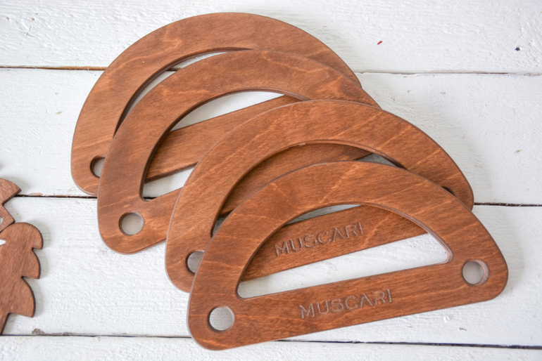 Материалы для рукоделияСмотрите, мы вчера сделали вот такие деревянные ручки для 2 сумок с логотипом хозяйки