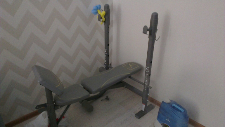 и куча гантелей на любой вкус. А еще мы гуляем в коломенском, где наш папа занимается на местной хорошо оборудованной площадке (турники, скамейки, стенка и пр.)