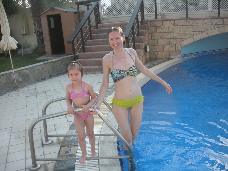 Внешний видпрошёл год с момента родов.у меня всё в порядке:растяжек не осталось,цикл нормализовался с помощью достинекса,ничего по женски не беспокоит.хотим ещё одного малыша.стараемся.а это я с дочкой,не судите строго,мы на отдыхе.я как всегда-47 кг.маловато будет,но само уходит,не сохраняется ничего.