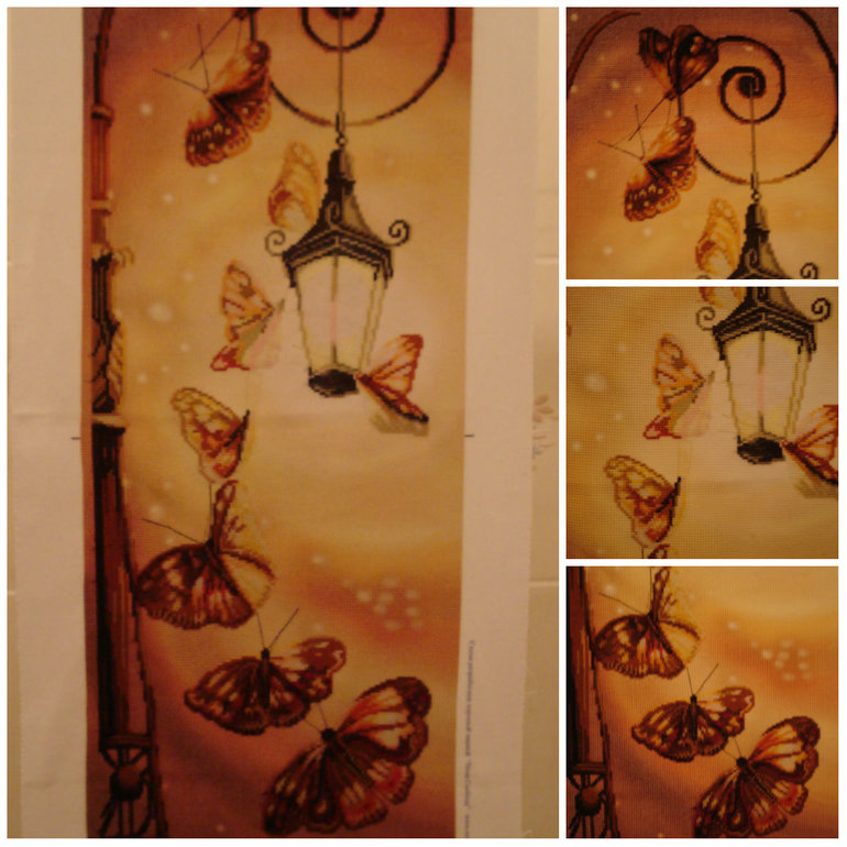 да. Не терпится оформить. Вчера и сегодня столько распускала! То у бабочки 12 вместо 13 нитки взяла и много вышила. Вообще, бесит эта кривая нумерация на картонке ((( То бек на фонаре села вышивать и заметила, что нитка с другого цвета висит. Пригляделась: на фонаре она же, я ж дотошная, распустила ((( Зато теперь довольная!!!