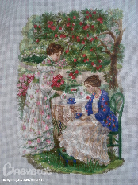 2."Русская усадьба. Чай под яблоней" Riolis. Вышивала в пару к "Русская усадьба. Цветет сирень".