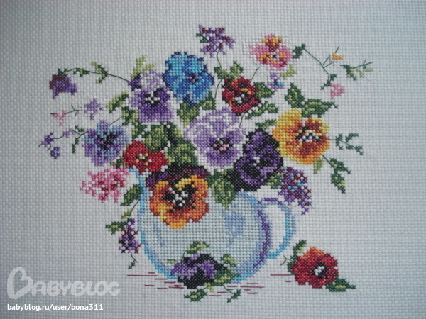 4. "Акварельные флоксы" Riolis. Канва ужасная, полукрестики утомили, результатом довольна.