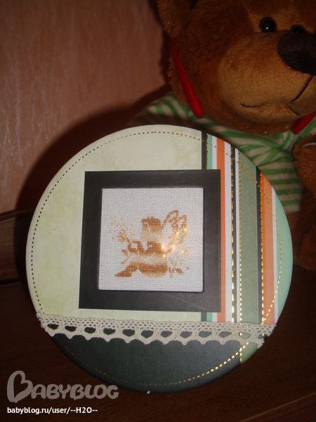 Да, блики очень удачно легли. И рамочка очень симпатичная. А сам ангелочек малюсенький такой, тяжело, наверное, было через одну нить вышивать?