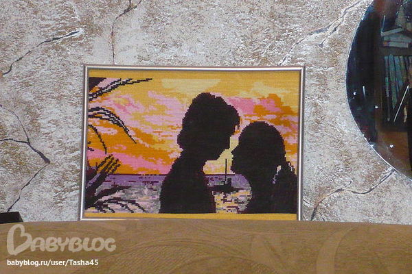 Они вообще прекрасны. Вышивались в одну ниточку. Вот если бы я тогда знала столько о вышивке, сколько сейчас ))) я бы их на чисто белой и желтоватой канве вышила, а в наборе была такая, она какая-то льняная и сероватая, но тогда я даже не подозревала, что бывает канва по отдельности и т.д. Это вышивалось лет 6-7 назад. И это самая первая моя вышивка. И схема давно потеряна. Это я теперь все как плюшкин складываю и знаю куда и кому я подарили или прибрала свои схемки))))