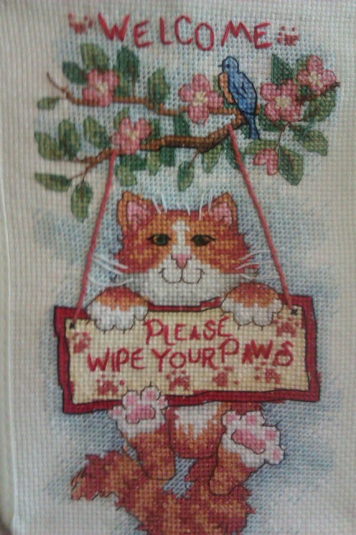 Приветики!Вышился вот такой котик.Это мой первый баннер,поэтомк уголок не идеален и в целом неаккуратно смотрится!Как найду мастер-класс-переделаю обязательно.Отдыхалочкой назвать не могу-ушел месяц.Жду ваши комменты,что и как надо переделать.