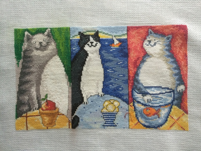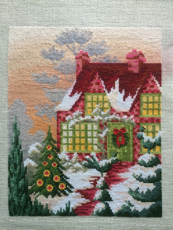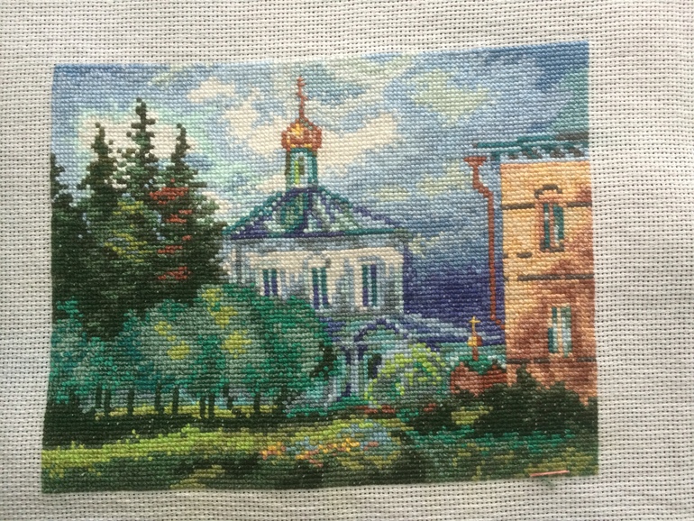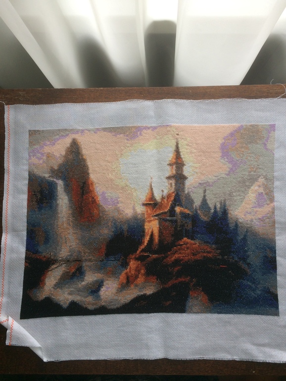 эту работу выбрал муж, она лежала у меня лет 7, я честно начинала её вышивать пару раз, но не сошлось, в итоге вышила мама.... муж в офис повесит....