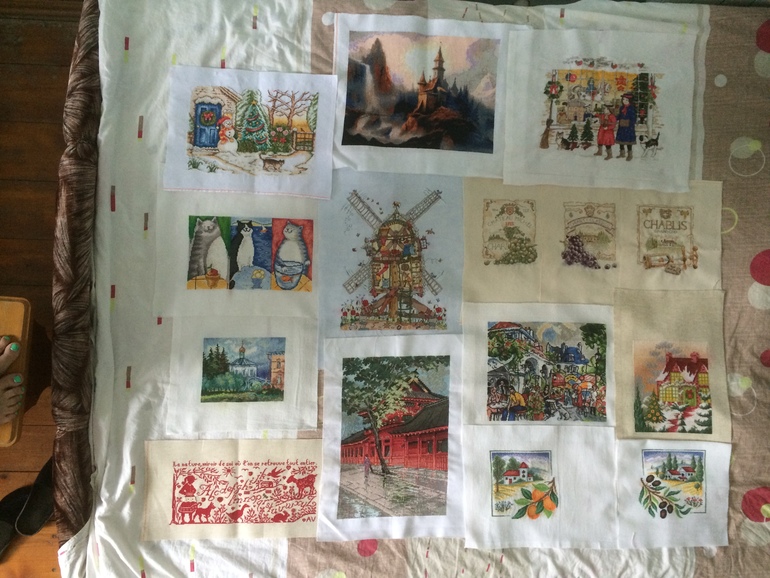 Вышивка крестомВсем привет! С чего начать? Который год летом, встретившись с мамой в родном городе, привозим свои работы вышитые за год и везём в Уфу в багетку. В этот раз получилось 15 работ, разного размера и сложности. Мама на пенсии - просто не месяц так работа, её 10 и моих 5 получилось. Для трёх работ привезли мешок пробок. Позвонила накануне, меня обрадовали что они уходят в отпуск и всё оформить не успевают. Оформленные ниже постик выложу, а тут мамины до оформления, так как мои вы все видели...