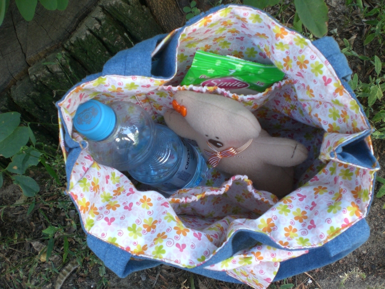 У друзей в прошлом году родилась долгожданная дочечка Кристина ))) И вот на годик ей и ее маме ( носить то мама будет эту сумочку в песочницу ))) придумалась идея смастерить сумочку . Сама я не умею шить . Обратилась опять к куме со своей задумкой , но она расфантазировалась по - своему )))) чему я очень - приочень рада )))) Сумочка получилась просто ПРЕЛЕСТЬ !!!!