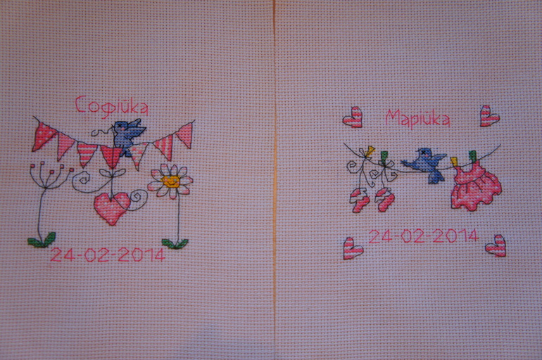 Вышивка крестомВот такие метрики были вышиты для деток наших друзей.