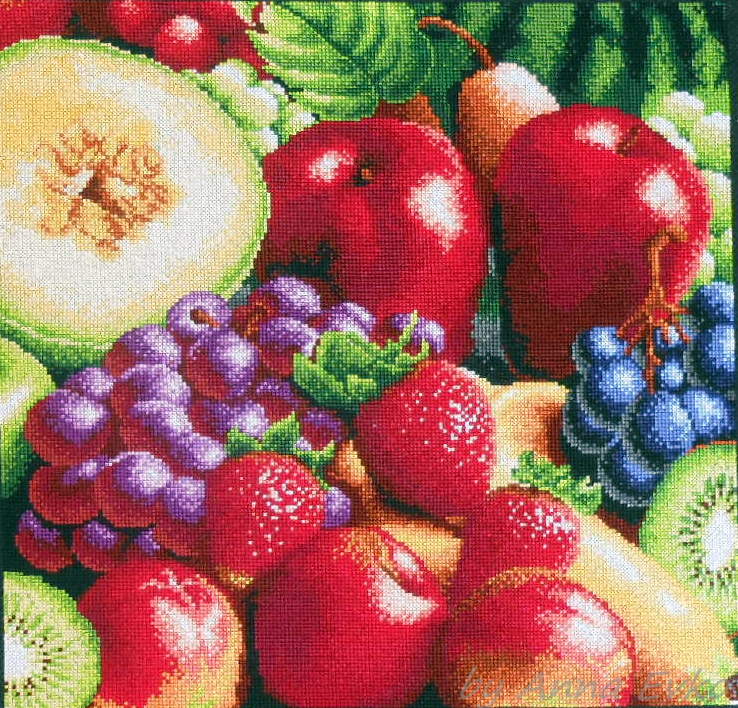 Вышивка крестомЭтим летом вышились вот такие фруктики. Сейчас я в раздумьях, как оформить? В багет или сделать подушку? Лежит и ждет своего часа еще один набор из этой серии в пару к этому.