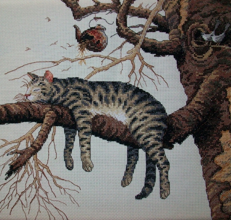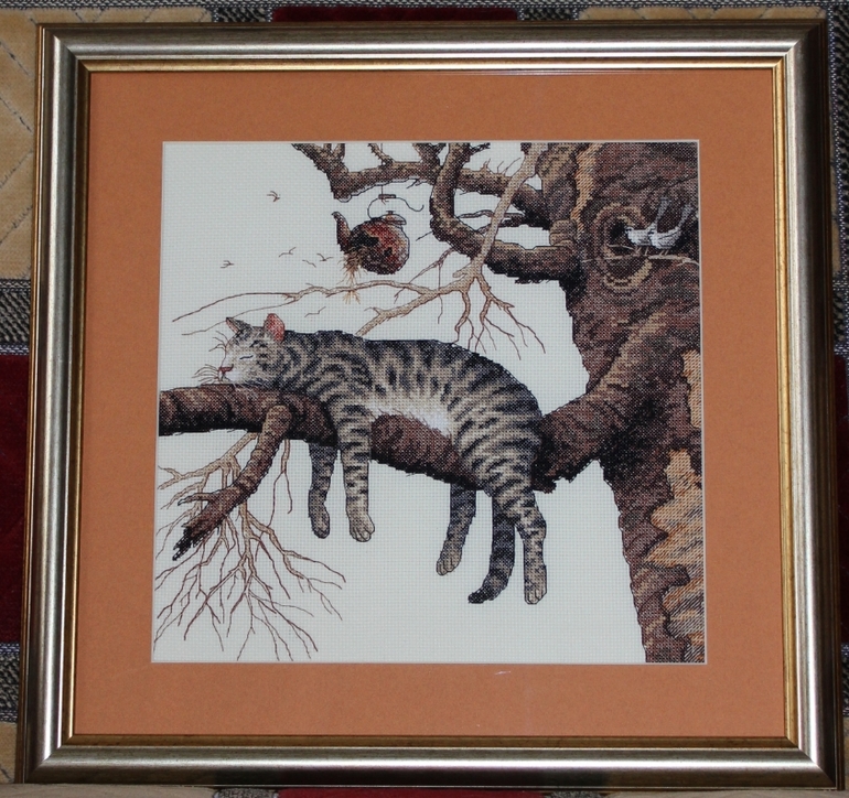 Вышивка крестомВсе привет. Сегодня я забрала из багетки еще одну свою работу - "Слишком устал" от dimensions. Одна из моих самых любимых работ. Муж не большой ценителей вышивки, когда впервые увидел этот набор, еще в магазине, улыбнулся и сказал, что он ему нравится.