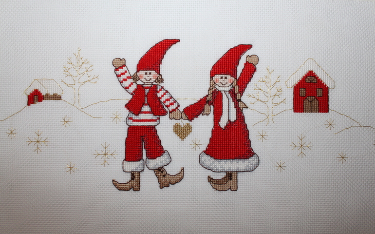 Есть вопрос!Вот и вышились мои новогодние гномики. Завтра поедут в багетку. Задумалась о цвете рамочки. Как считаете, красную взять или белую? А может, просто деревянную?)