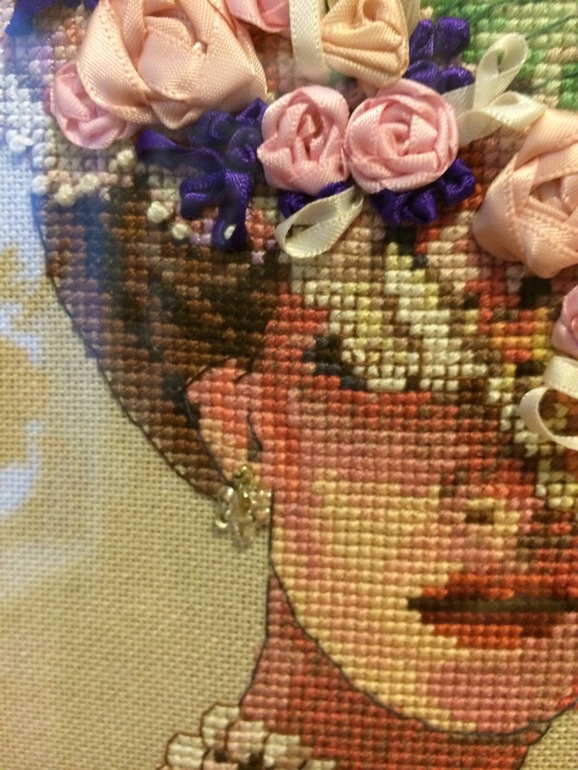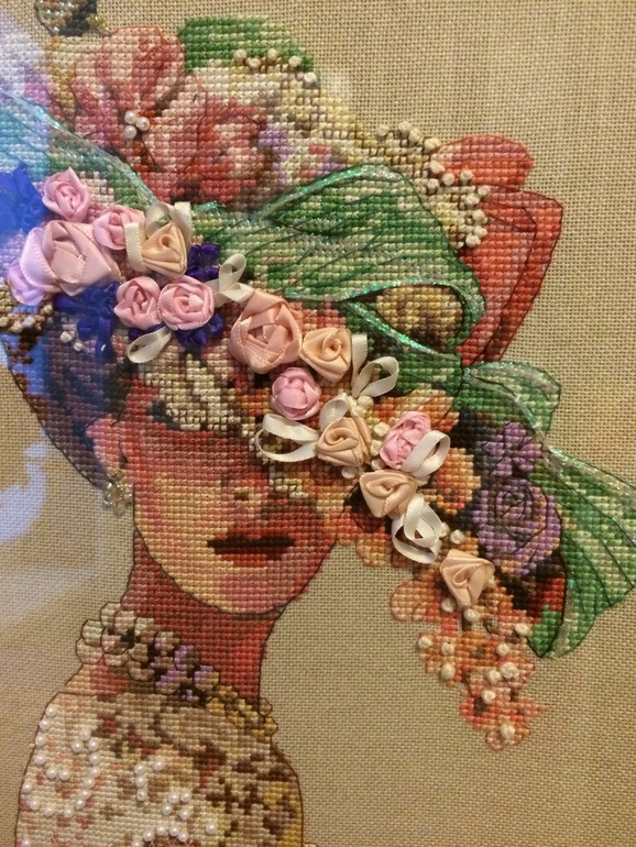 Вышивала Маме в подарок, планирует повесить ее в спальне. Оформление выбирала Мама, но и мне очень нравится.