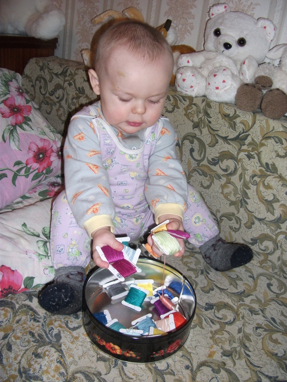 Старый комп сломался, а на нем было много фотографий, где они еще маленькие. И немало фоток рядом с моей вышивкой.