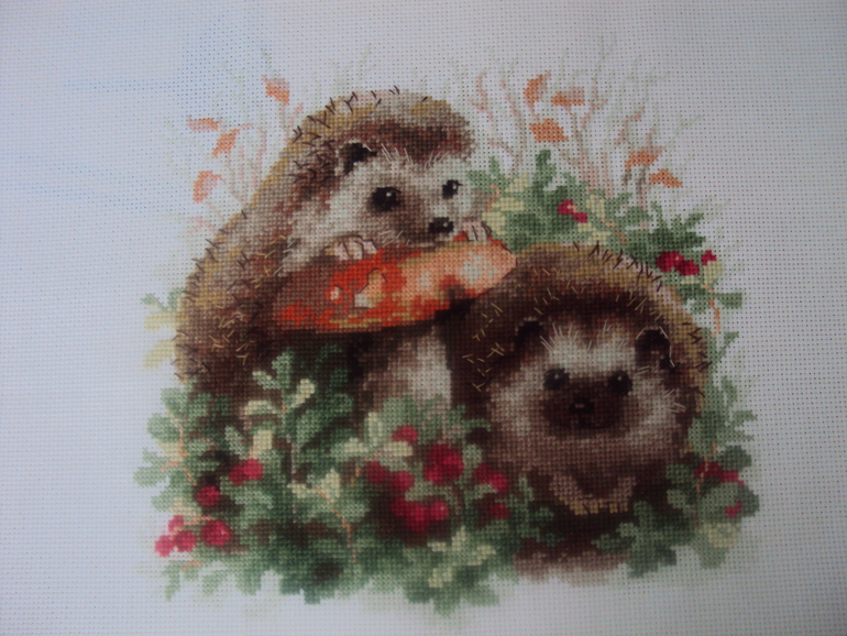 Сейчас взяла другой набор Риолис — Дачники. Там 4 цвета совпадает с ежиками)) даже не буду перематывать эти цвета из нового набора