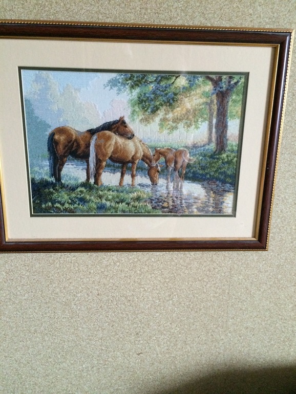 Этих лошадок мне бабушка вышила, я люблю лошадей. Хочу к ним в пару вышить Дим морозное утро вроде