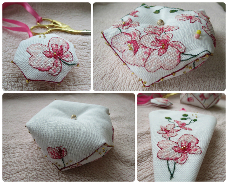Началось все с того, что решила подарить маме несколько милых вещиц для рукоделия. В том числе и новые ножнички. Ну и пришла идея вышить чехольчик и маячок для них. Ну а кривулька за ними потянулась.