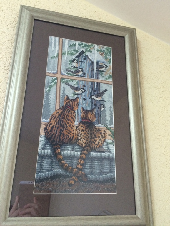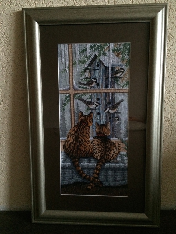 Вышивка крестомСегодня забрала из багетки оформленную вышивку фирмы Dimensions "Кто за кем наблюдает". По скольку это мой первый Дим то впечатлений масса! спешу поделиться ими