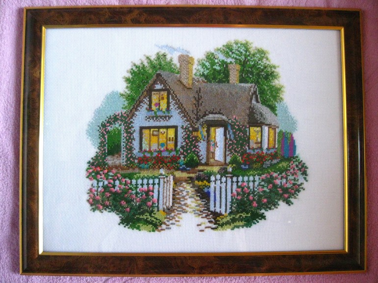 А этот домик вышила в прошлом году (подбор, шерстяные ниточки)