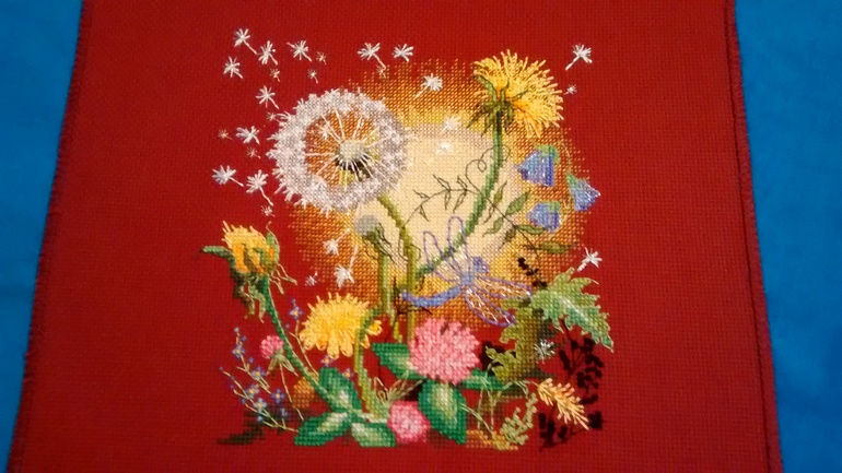 Пока вышивала, так и представляла то горы, то поля))) А сколько интересных нюансов: прозрачные, переливающиеся крылышки стрекозы, пушистые одуваны, нежные колокольчики и т.д., и т.д...