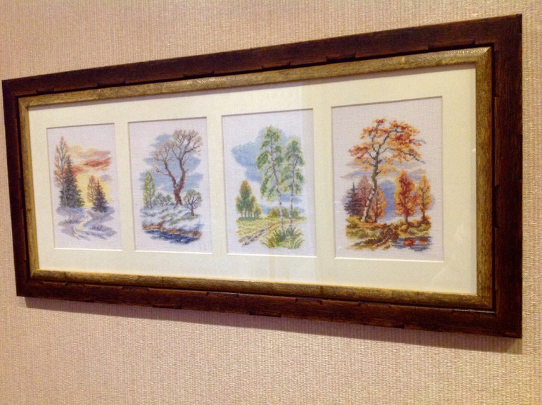 Комплект из четырех небольших вышивок "Времена года". Ниже фото моей готовой вышивки - не продается))