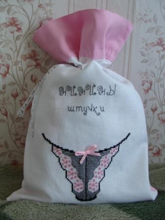 Ой, мешочек — супер!!! Сама такой хочу вышить, только еще с бюстиком, да вот руки никак не доходят((