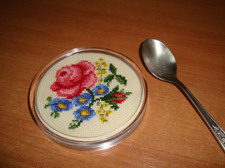Набор РТО, канва Аида 18, нитки ДМС 11 цветов, диаметр подстаканника 8 см.