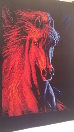Эту лошадь (коня?) я вымучивала аж с 2007 года - вышила чуть-чуть и забросила. А в прошлом году (как раз был год Лошади) решила взять себя в руки и закончить. Обрамили и повесили аккурат за 2 дня до окончания года :)