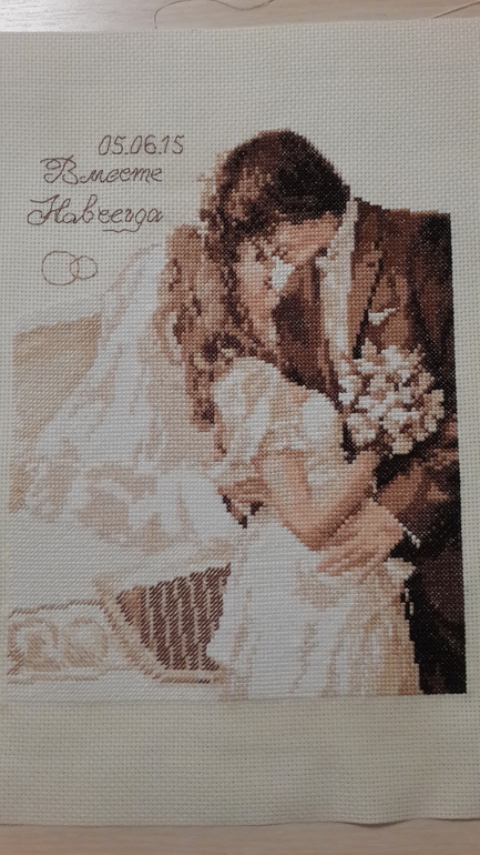 Начала вышивать 5 мая и очень торопилась, свадьба совсем скоро (жаль только не попаду (((()