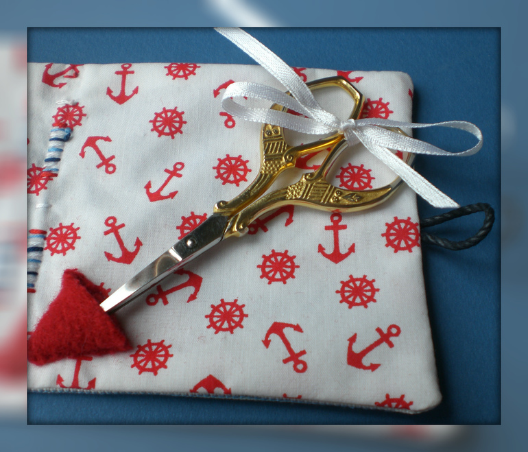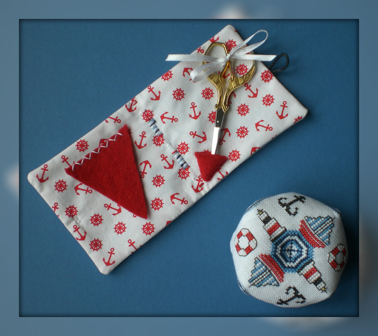 Какая красота! Морская тематика всегда актуальна и всегда 100% попадание. Шикарнейший подарок! Только ножнички и иголки пускай подруга у тебя откупит за символическую цену-1 копейку, т.к. колюще-режущие  предметы не дарятся.Какая ты вообще умничка!П.С. Что за дизайн и где его найти можно  на просторах www?
