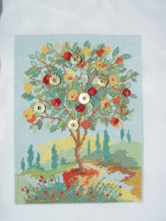 В оригинале дерево просто апельсиновое, без всяких монет. В моём исполнении получилось скорее яблочное. Монеты - да - в ассортименте