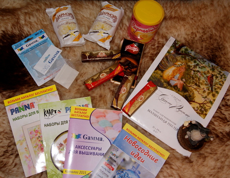 Я рада, что ты наконец получила свой подарок))) Надеюсь, набор для вышивания тебе понравился так же как и котик))) Хотелось подарить что-то в твоем духе (романтичное и нежное) и, чтобы точно не было повтора. Это довольно новый производитель. Сама я еще не вышивала его наборы, но несколько купила в подарок. А еще я очень долго искала такого котика, потому и тянула с отправкой))) У нас как на зло, все палатки в переходах метро посносили и искать сувениры стало сложно. Ну а потом случайно увидела в магазине и купила, надеясь, что такого в твоей коллекции еще не было. Кстати, жду отдельного поста в твоем дневнике, посвященного коллекции котиков с рыбкой!
