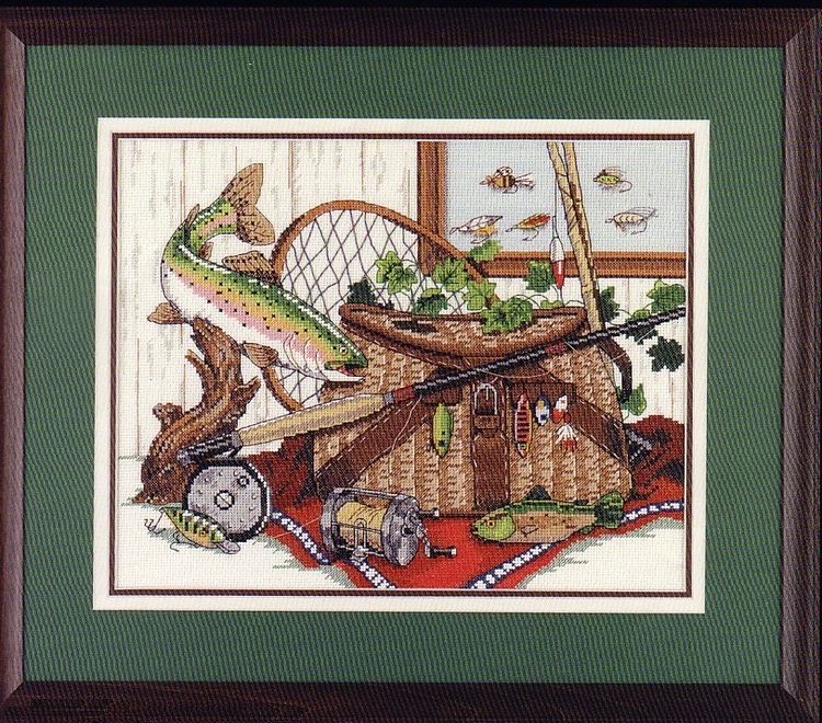 Давно хочу вышить этот набор - Dimensions Fishermen's fancy - и подарить прекрасному человеку, замечательному другу и "одержимому" рыбаку, у которого, так же как и у "заправской" вышивальщицы, все по шкафчикам, сумочкам, коробочкам, баночкам. Одна проблема - набор давно снят с производства. Но...! Кто ищет, тот всегда найдет! Вот и я нашла схему в РМ, однако, так я не очень опытная мастерица, вышивать по ней побаиваюсь. Вышиваю только по готовым наборам, опыт подбора был - но результат далеко не восторг. Я немного страдаю "цветовым кретинизмом" - отличить канву цвета слоновая кость и молочного - для меня из области фантастики. Про замену ниток - вообще молчу - понять что, что-то не то, смогу только отшив почти готовую работу. Поэтому поиски продолжились и нашла я, таки, набор - оригинальный, по нескромной цене. В перенаборе схемы в РМ указан год выпуска - 1996. Вот и стою я теперь перед выбором - купить набор или вышивать по схеме в РМ. Цена вопроса, конечно, в пользу РМ, результат - безусловно в пользу набора. Продавец на мое письмо ответил, что упаковка потрепанная, но содержимое в целости.