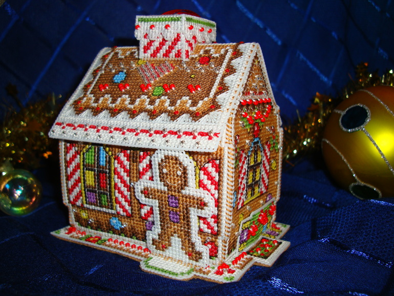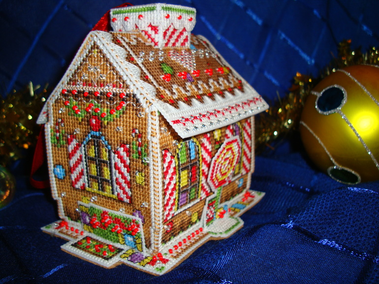 Набор Панна "Пряничный домик" , вышивка на пластиковой канве, счетный крест, бэк, бисер. Это у меня второй Новый год с Панна, в прошлом году был сапожок ТУТ