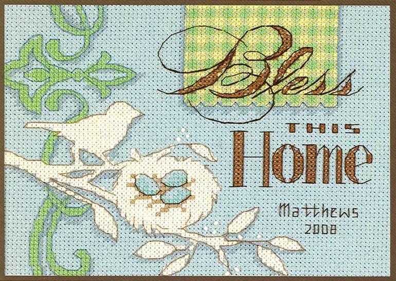 Димовский "Bless this home" набором найти не удалось, но схема нашлась на просторах Интернета, а с голубой равномеркой помогла Светлана Риегер (я думаю, многие знают про закупку цвайгарта в контакте).