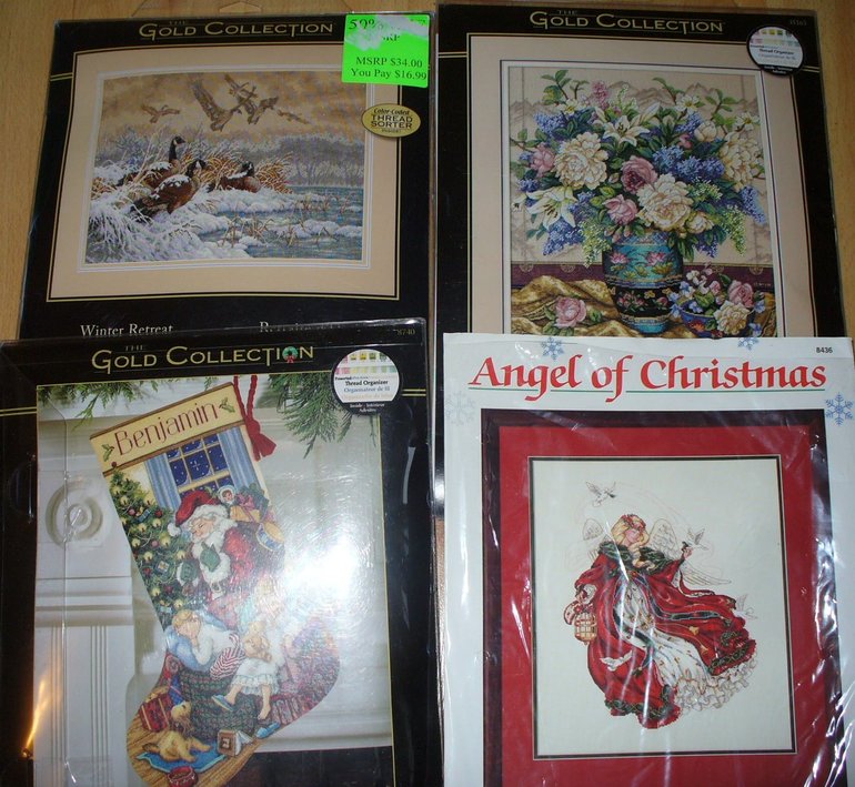 Еще есть журналы, мулине, канва, лён и авторские схемы.
