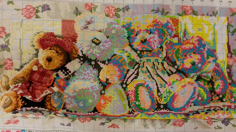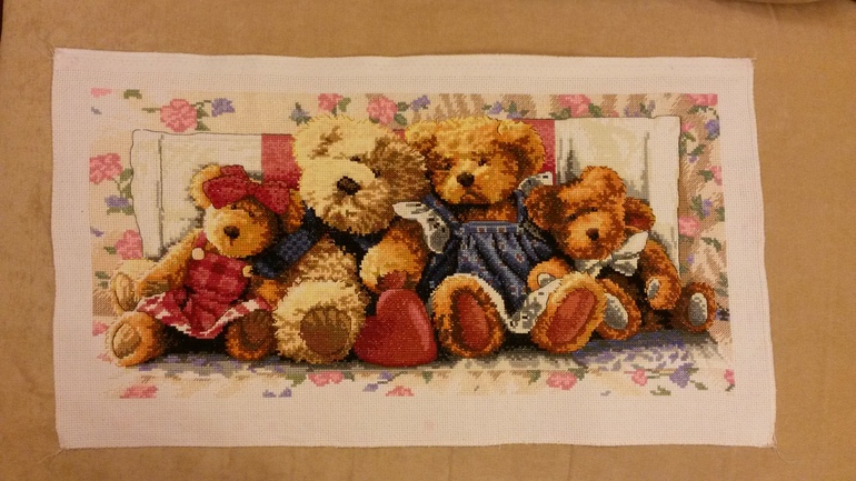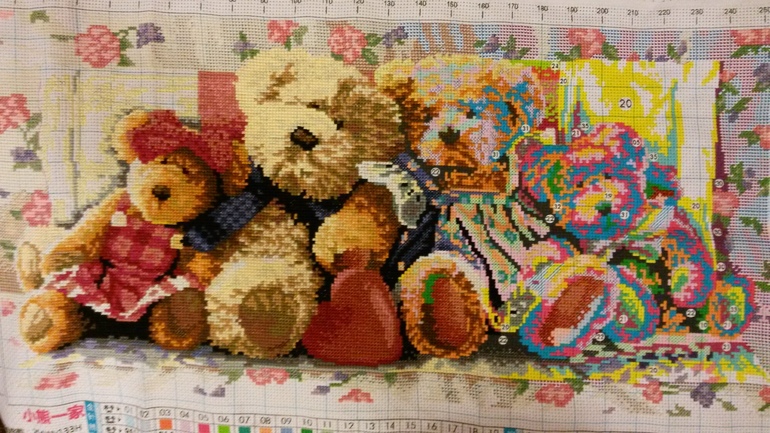 Быстро вы их! Я около 4 мес вышивала ( оригинал) Мне в китайской копии не нравится мишка папа- каков то он слишком яркий, остальные мишки более менее.