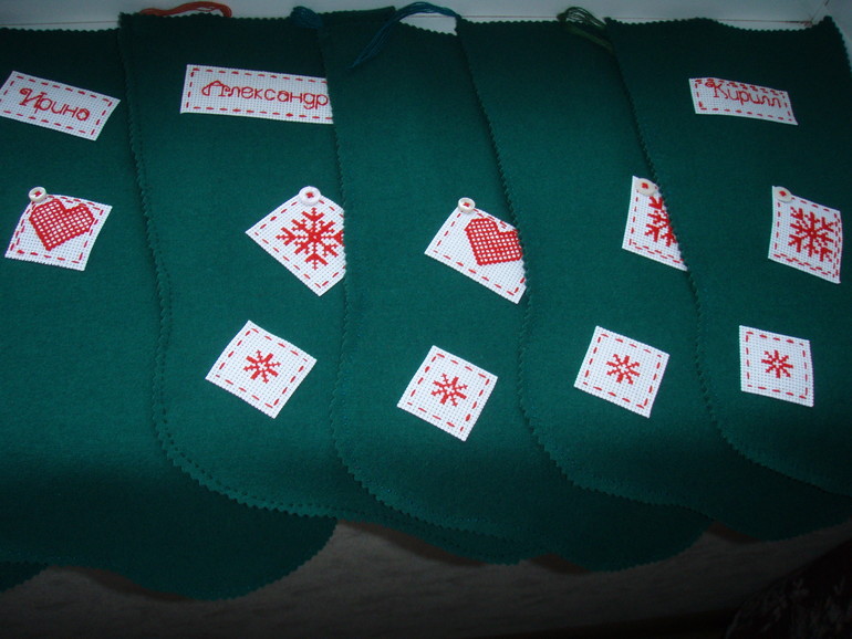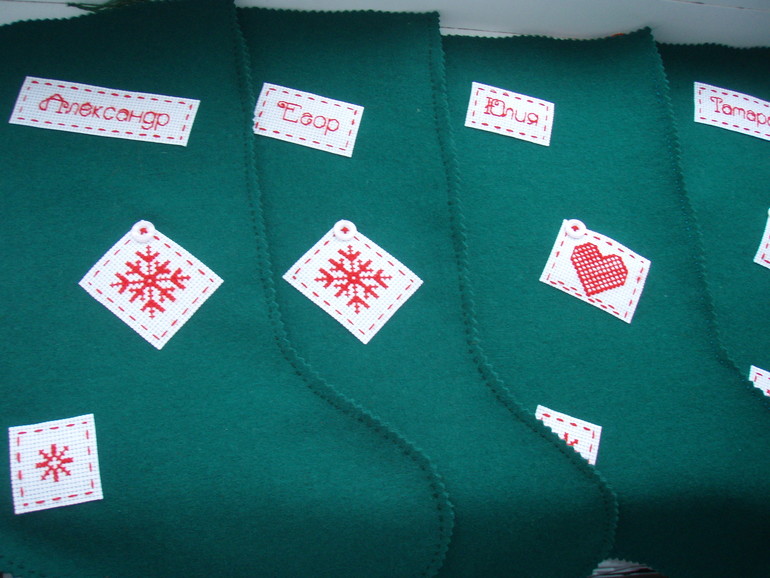 Вышивка крестомКак говорится, готовь сани летом... Поэтому, пока остались запал и навык, а также не разбежались по хомячьей норме материалы, я пошила вторую волну новогодних подподарочных носочков. 11 штук) 9 - на имеющихся членов семьи + 2 про запас, пока безымянных. Обновляю, так сказать, носочный парк.