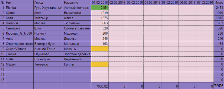 Всем привет!!! у меня сегодня весь день загружен был...в итоге всего крестиков 20 наверно наковыряла, поэтому Вика ставь либо прогул либо выходной(((