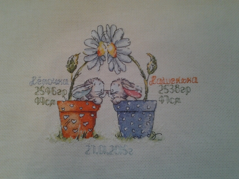 Вышивка крестомВот такая метрика вышилась у меня в подарок подруге,ее двойняшкам!!!здоровья вам,радости и счастья любимки