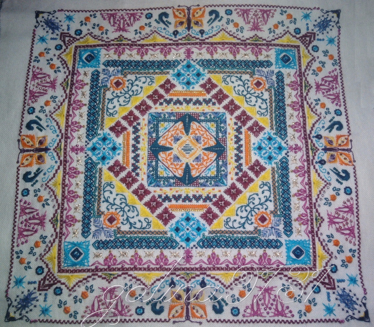Другие виды вышивкиФрагмент вы уже видели)))А я покажу вам полный отшив по схеме .Лично я представила эту схему именно в такой цветовой гамме(конечно,по ходу что-то меняла)!Результатом довольна,теперь буду думать как это оформить!