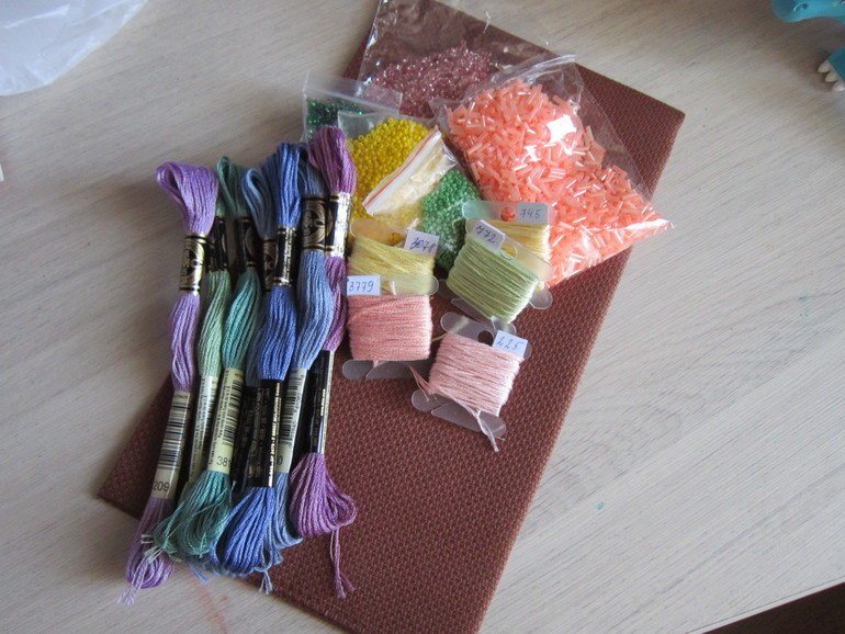 Ткань равномерку не достала. Выбор был между двуниткой и 14 аидой. Решила аиду, так как двунитка может исказить рисунок. Бисер тоже есть, надо только достать из закромов.