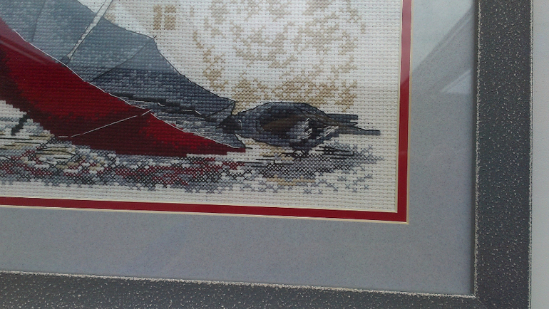 Вышивка крестомДевочки, всем привет! Спешу поделиться - достала из тумбочки, отгладила свой зонт, и решила оформить. Первый раз в багетке оформляла, замучила я там всех по моему. Зато теперь к моей столешнице подходит идеально рама) Хотя девушка-приемщица и сказала что подбирать оформление к интерьеру это дурной тон!