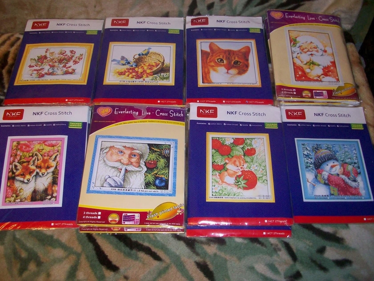 Everlasting cross stitch у меня Поцелуй для снеговика. Схема хорошая, у меня канва с нанесенным рисунком, нанесено четко. Нитки хорошие, такие же как NKF. Кстати, я точно не знаю, но мне кажется NKF - это марка ниток, потому что на всех моих китайцах есть этот знак. А вот отшитое пока только Почти Идеальный могу показать, и половину Семейства Медведей. Оба набора со значком NKF. Поцелуй для снеговика еще не вышивала, но нитки оттуда тырила.