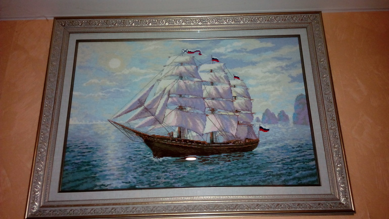 Вышивка крестомДошли руки до оформления моего красавца.Шерсть, полный зашив. Схема замечательная, к шерсти тоже нареканий нет. Вышила очень быстро, за три с небольшим месяца. Так нравился процесс и получающийся результат.