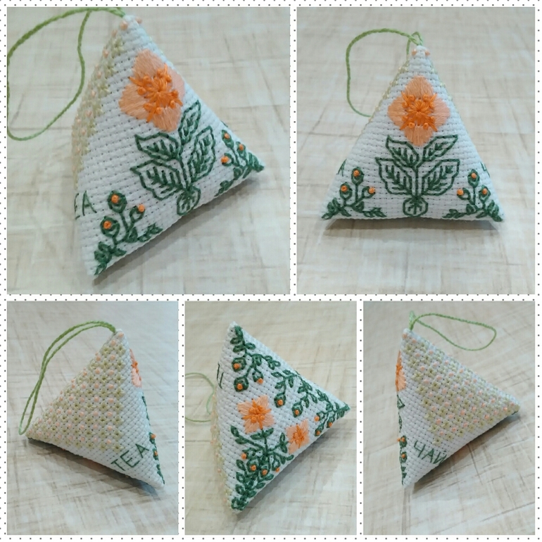 И чайный пакетик, в котором вместо пуговиц сделала надписи, а бисер заменила на фрузелочки
