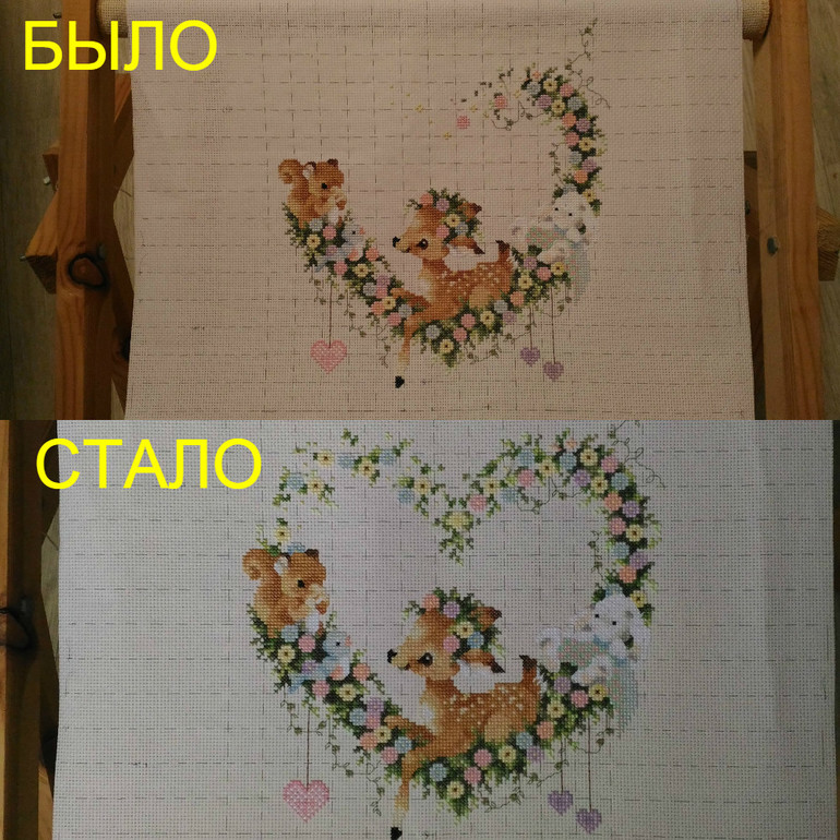 Всем привет! Очень мне нравится сердечко))) а теперь о моей головной боли...вышито ничтожно мало, всего 1000 крестиков от силы. Очень хочу к следующему отчету вышить оставшиеся 1000 крестиков и приступить к следующему листу где будет 5500 крестиков Фото того что бы найти не могу, стало вот так фото не переворачивается почему то